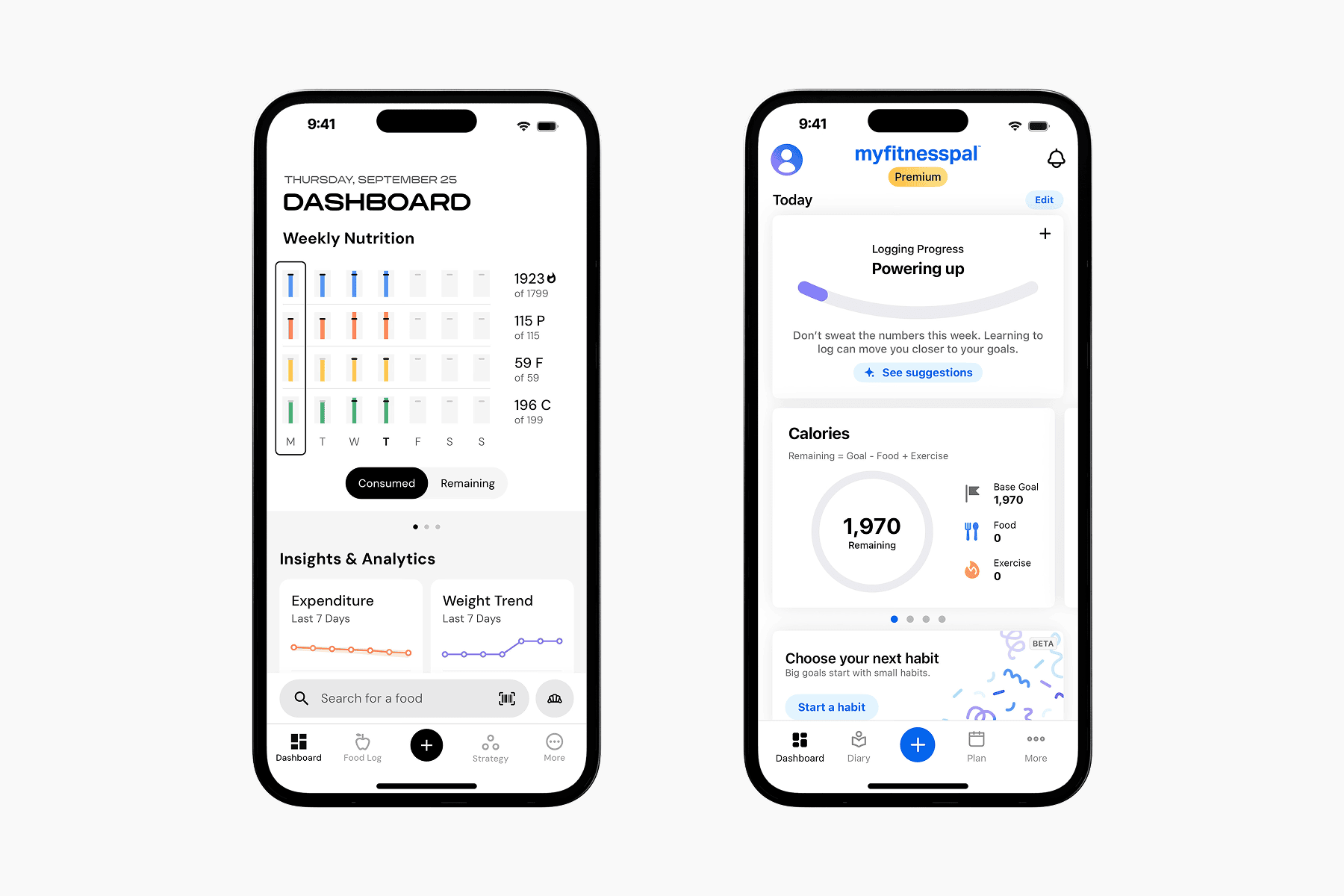 Comparación de interfaces entre MacroFactor y MyFitnessPal