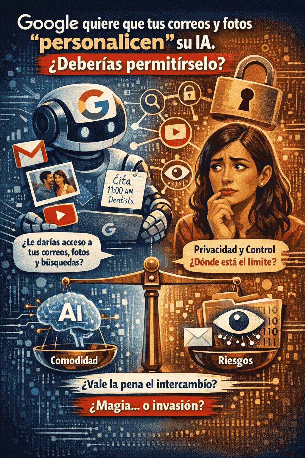 Este tipo de integración, aunque sorprendente, plantea un dilema ético importante: para lograr una experiencia más personalizada, el usuario debe ceder a la IA un acceso sin precedentes a su vida digital. Y aunque Google asegura que esta información no se utiliza para entrenar su modelo de inteligencia artificial, el simple hecho de permitirle acceder y procesar datos tan sensibles genera inquietud.