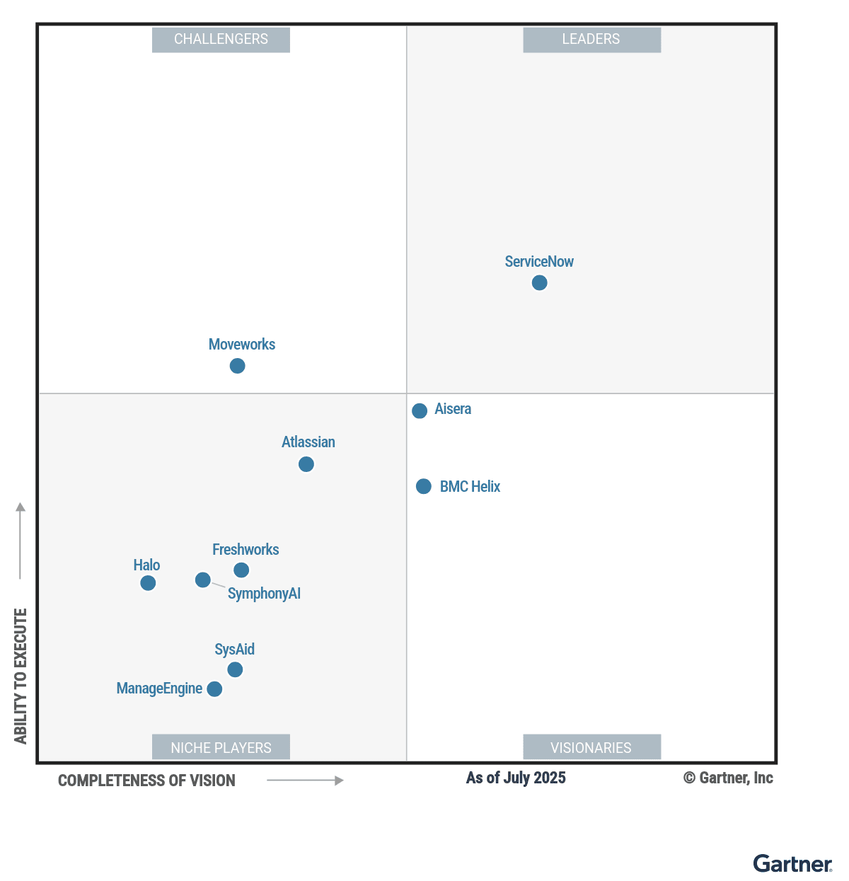 Img. 1 - Magic Quadrant for Artificial Intelligence Applications in IT Service Management (Gartner, 2025)