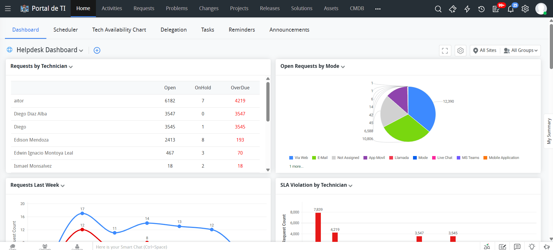 Img. 2 - Dashboard principal de ServiceDesk Plus.