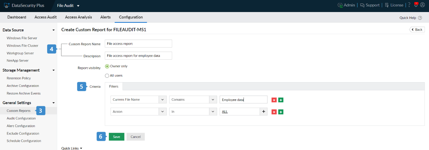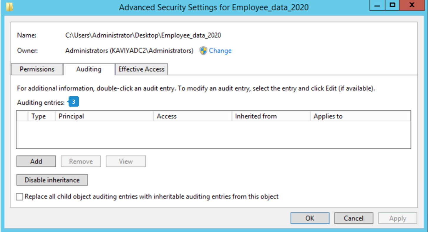 - Nombre del archivo: Ingrese el nombre del archivo que desea auditar. (Para este ejemplo, nombraremos el archivo Employee_Data.)