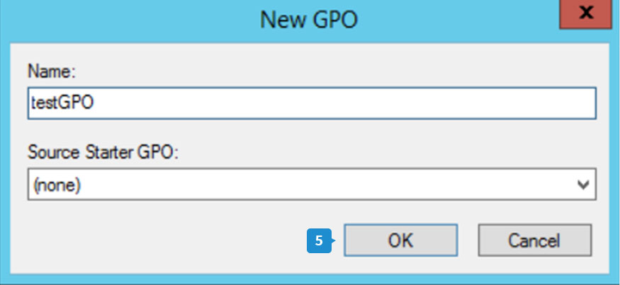 - Ingrese un nombre para el GPO en el cuadro de diálogo Nuevo GPO y haga clic en Aceptar.