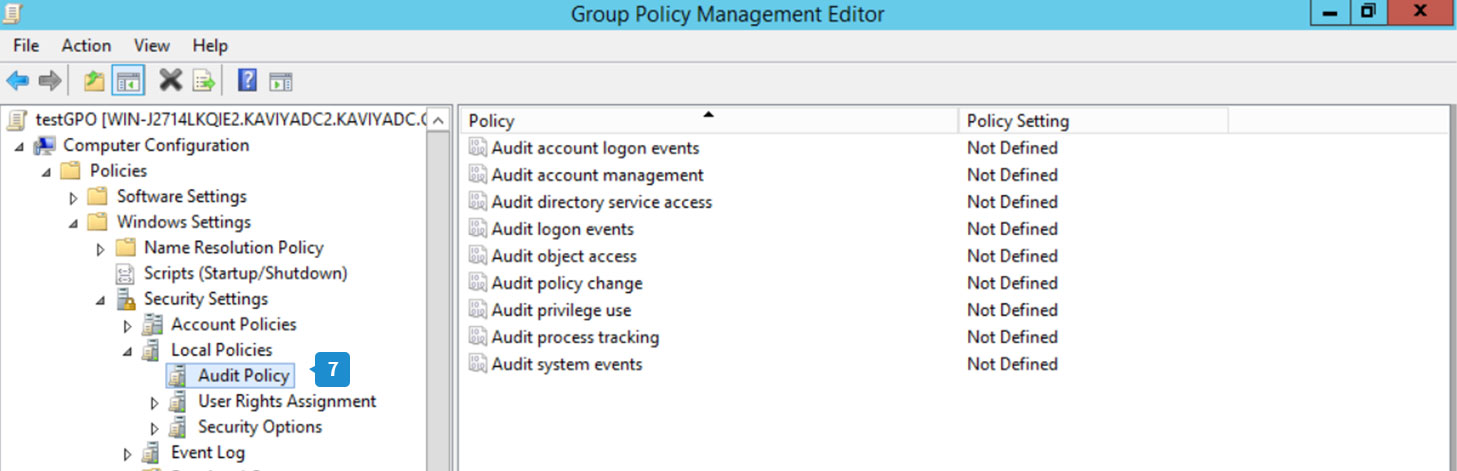 - En el Editor de gestión de políticas de grupos vaya a Configuración de equipo > Políticas > Ajustes de Windows > Ajustes de seguridad > Políticas locales > Política de auditoría.