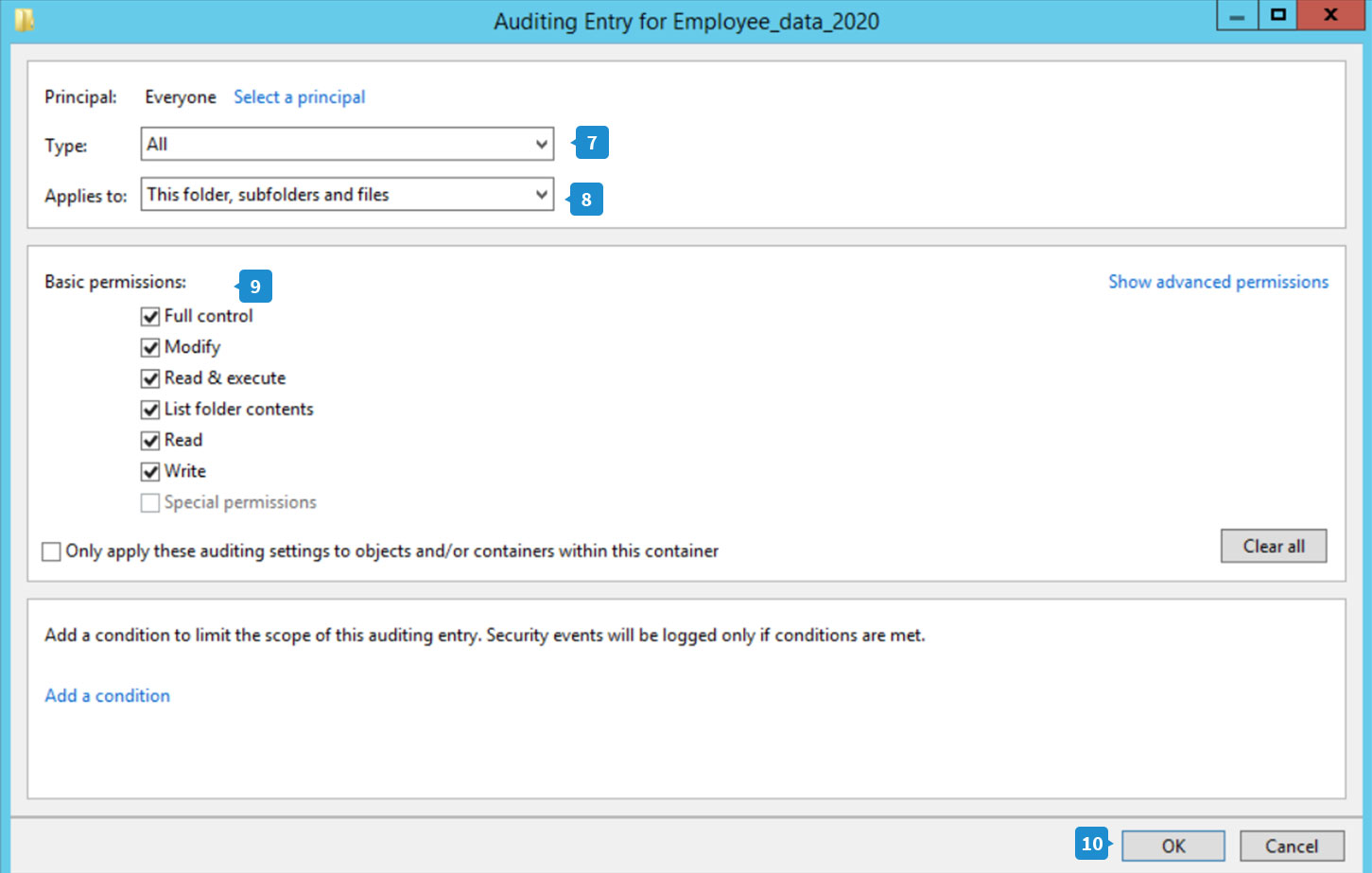 Pasos para establecer las propiedades de auditoría para el archivo requerido