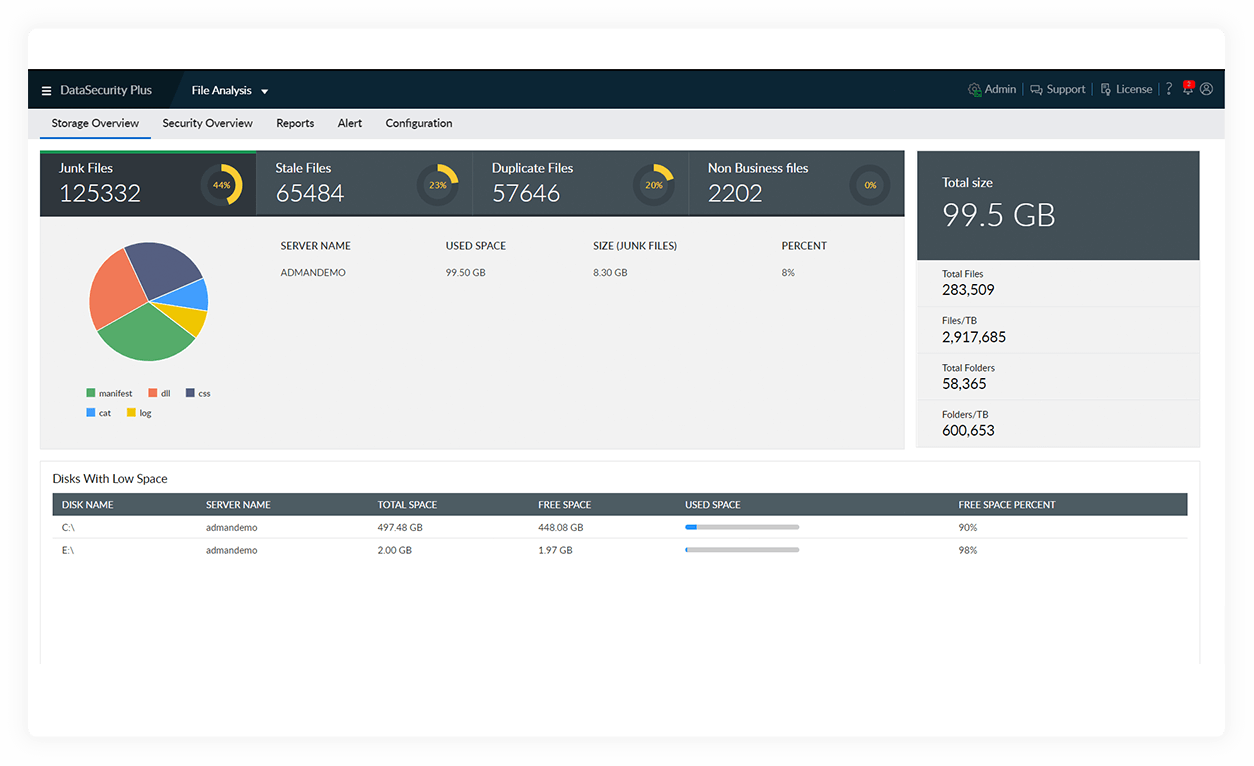 Monitoree el crecimiento anual del almacenamiento de archivos de su empresa con detalles útiles sobre el número de archivos en cada tipo de archivo y el número de archivos no empresariales y triviales.