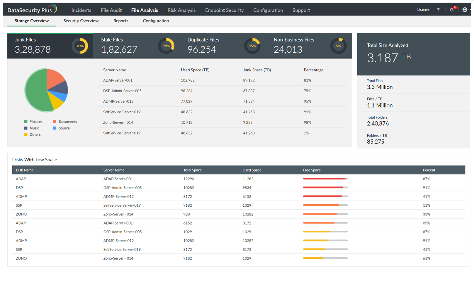 Analice y genere informes sobre el almacenamiento del servidor de archivos con nuestro software de análisis de archivos.
