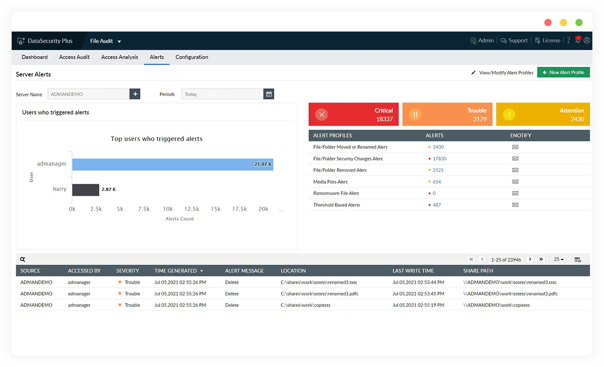 Habilite la detección de amenazas y monitoree la integridad de los archivos usando nuestro software para auditar servidores de archivos.
