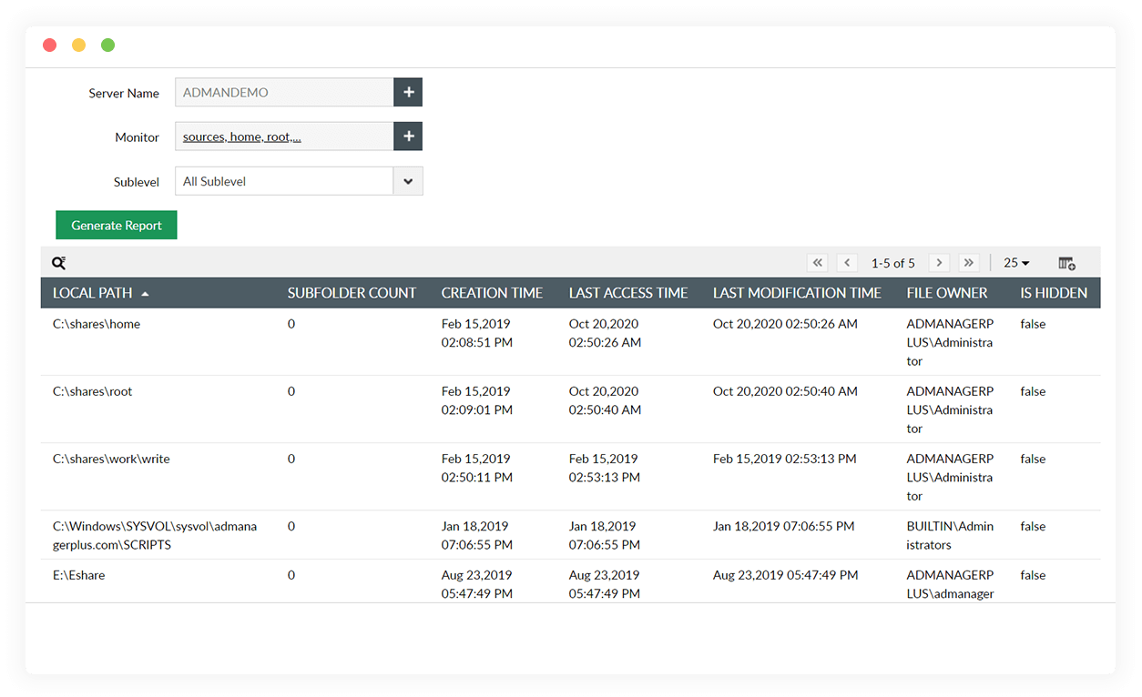 Las carpetas vacías se pueden utilizar de forma indebida para almacenar o compartir archivos personales y oficiales abusando de sus privilegios inherentes. Busque y elimine las carpetas vacías para poner fin a estas actividades no autorizadas.