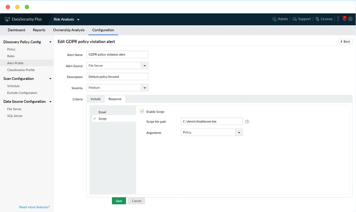 Automatice la clasificación de archivos confidenciales que violan las políticas de almacenamiento de su organización para comprender mejor qué archivos necesitan medidas de seguridad de datos más estrictas.