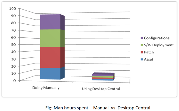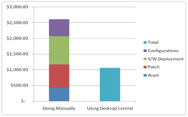 El gráfico que se muestra arriba es para realizar estas tareas solo una vez. Cuando aumenta la cantidad de veces que realiza estas tareas, tenderá a ahorrar aún más, ya que la mayoría de estas tareas se automatizan en Endpoint Central.