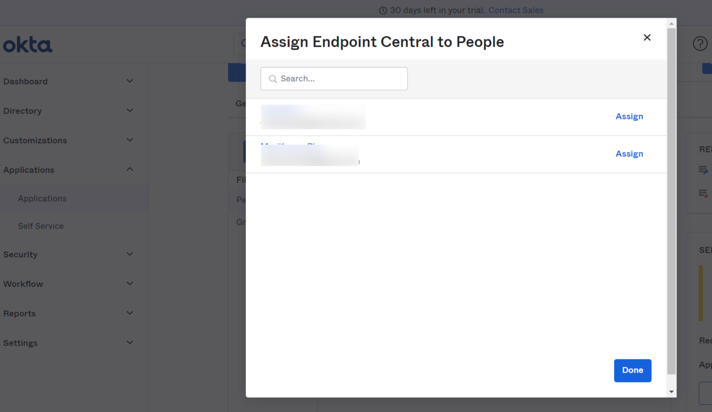 - Elija usuario o grupo y haga clic en Asignar. Puedes elegir asignar a personas o asignar a grupos. Haga clic en Listo.