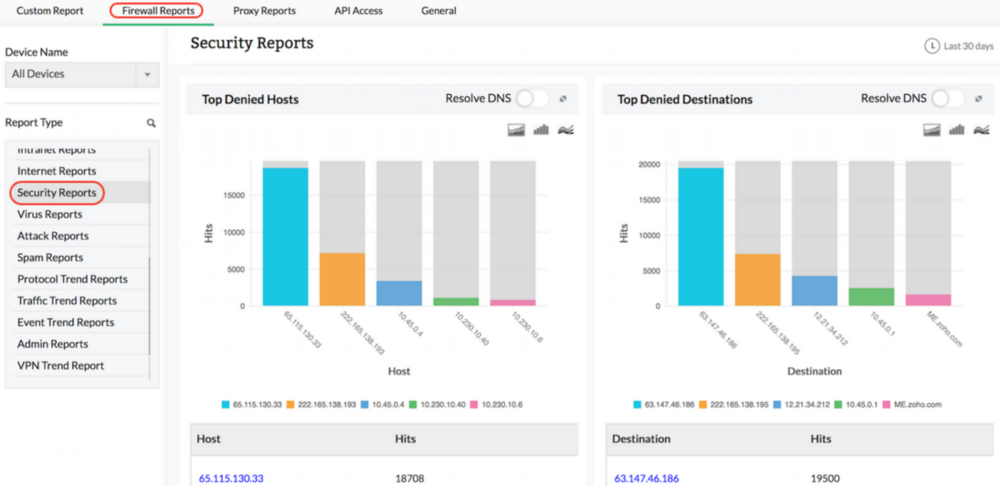 Firewall Analyzer es un software de análisis del syslog de firewall. Ofrece los siguientes informes de syslog para ayudar a identificar y prevenir las amenazas a la seguridad de la red en tiempo real: