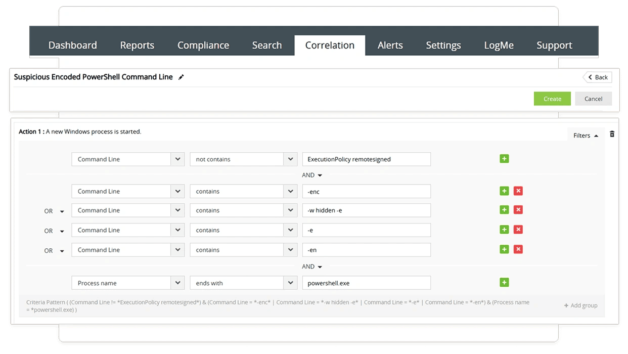 A diferencia de las soluciones de seguridad tradicionales, Log360 adopta un enfoque radical al analizar los indicadores de ataque (IoA). Estos se encargan de detectar un ataque en curso. De esta forma, la herramienta no solo los detecta, sino también garantiza una respuesta proactiva ante los incidentes.