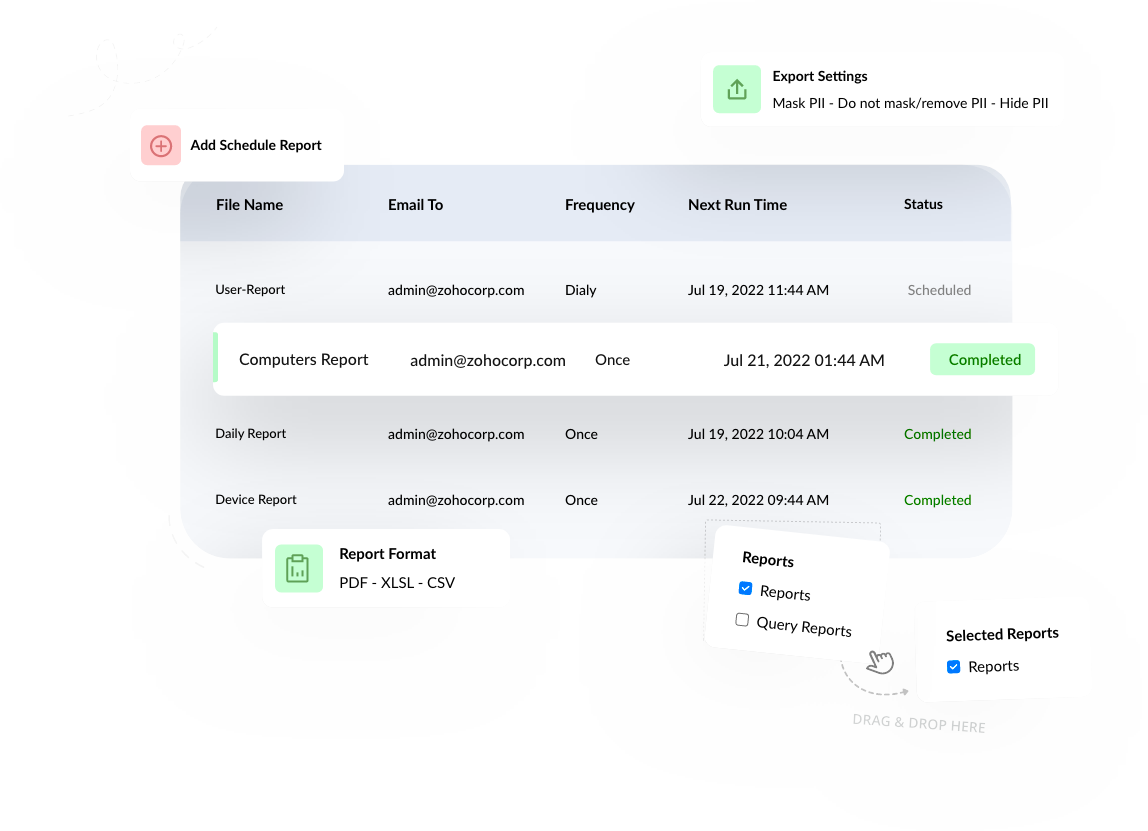 Genere informes instantáneos sobre la gestión de TI, procesos de seguridad y detalles del dispositivo para garantizar que su entorno de TI funciona sin errores.