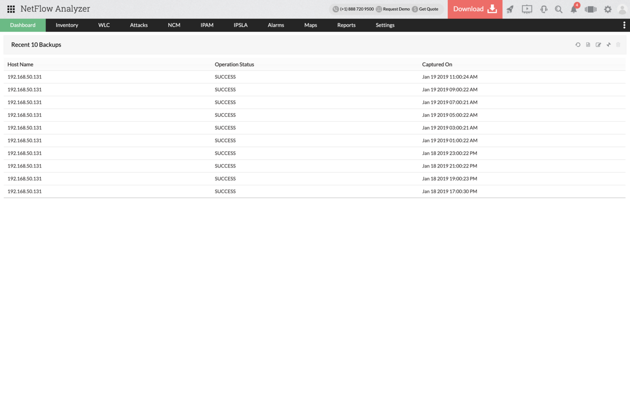 Ahora, la capacidad de respaldar periódicamente la configuración de su dispositivo ayuda a restaurarlo a sus configuraciones existentes o revertir cualquier configuración incorrecta. Conozca el nombre de su dispositivo, junto con la hora y fecha del respaldo y del estado con el add-on de NCM.