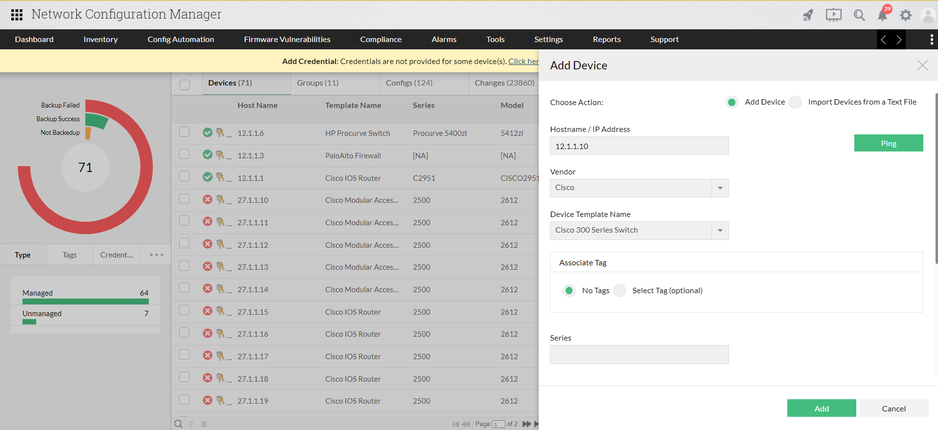 Network Configuration Manager permite añadir dispositivos habilitados para