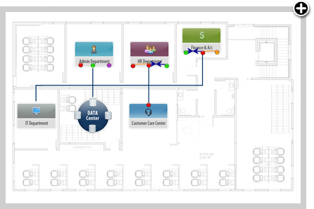 Es bastante sencillo crear un mapas de red personalizado con esta herramienta de generación de mapas. Coloque una imagen de fondo de su elección, agrupe los dispositivos relacionados con la vista y dibuje enlaces entre ellos (si es necesario). Aquí hay algunos ejemplos