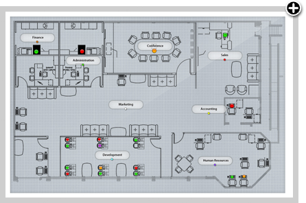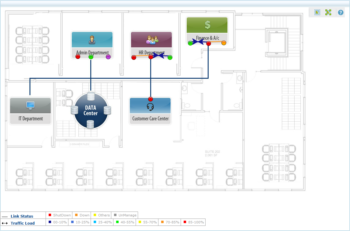 Además de permitirle identificar al instante cuellos de botella de desempeño e interrupciones, un mapa gráfico en tiempo real resuelve otras limitaciones operativas diarias como