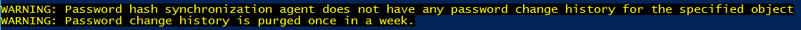 El agente de sincronización de hash de contraseña no tiene ningún historial de cambio de contraseña para el objeto especificado. El historial de contraseñas se elimina una vez a la semana.
