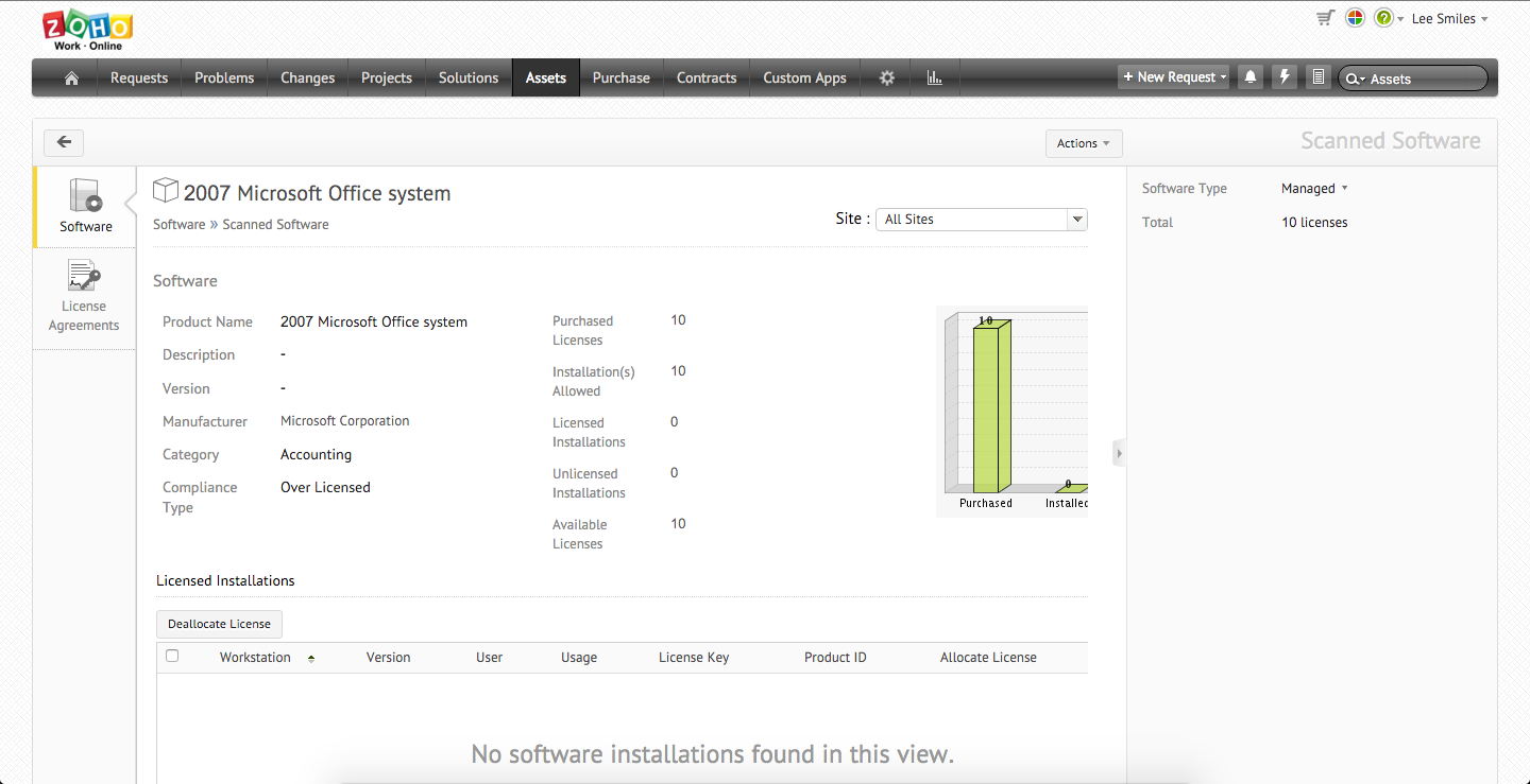 • Navegue fácilmente las auditorías de software realizando el seguimiento de cada instalación y asignando licencias de software individuales entre instalaciones.