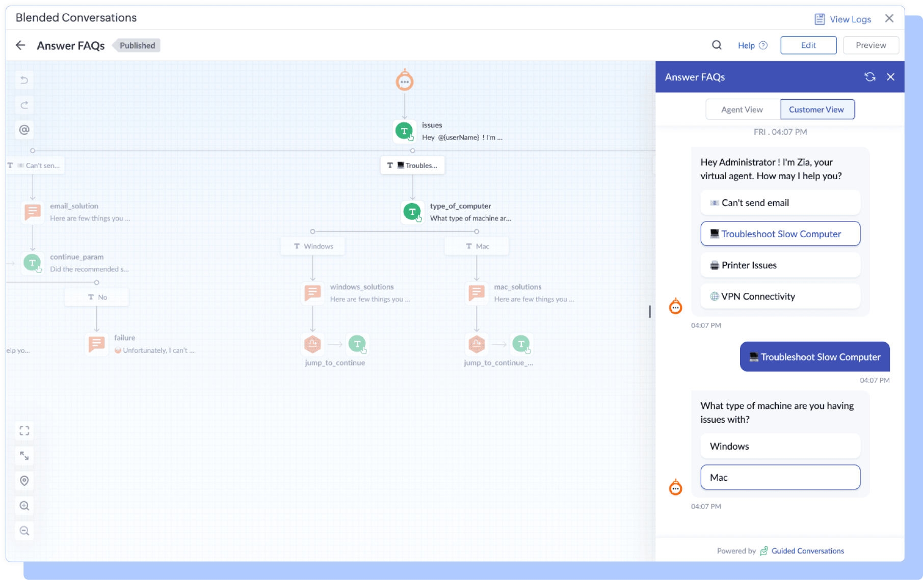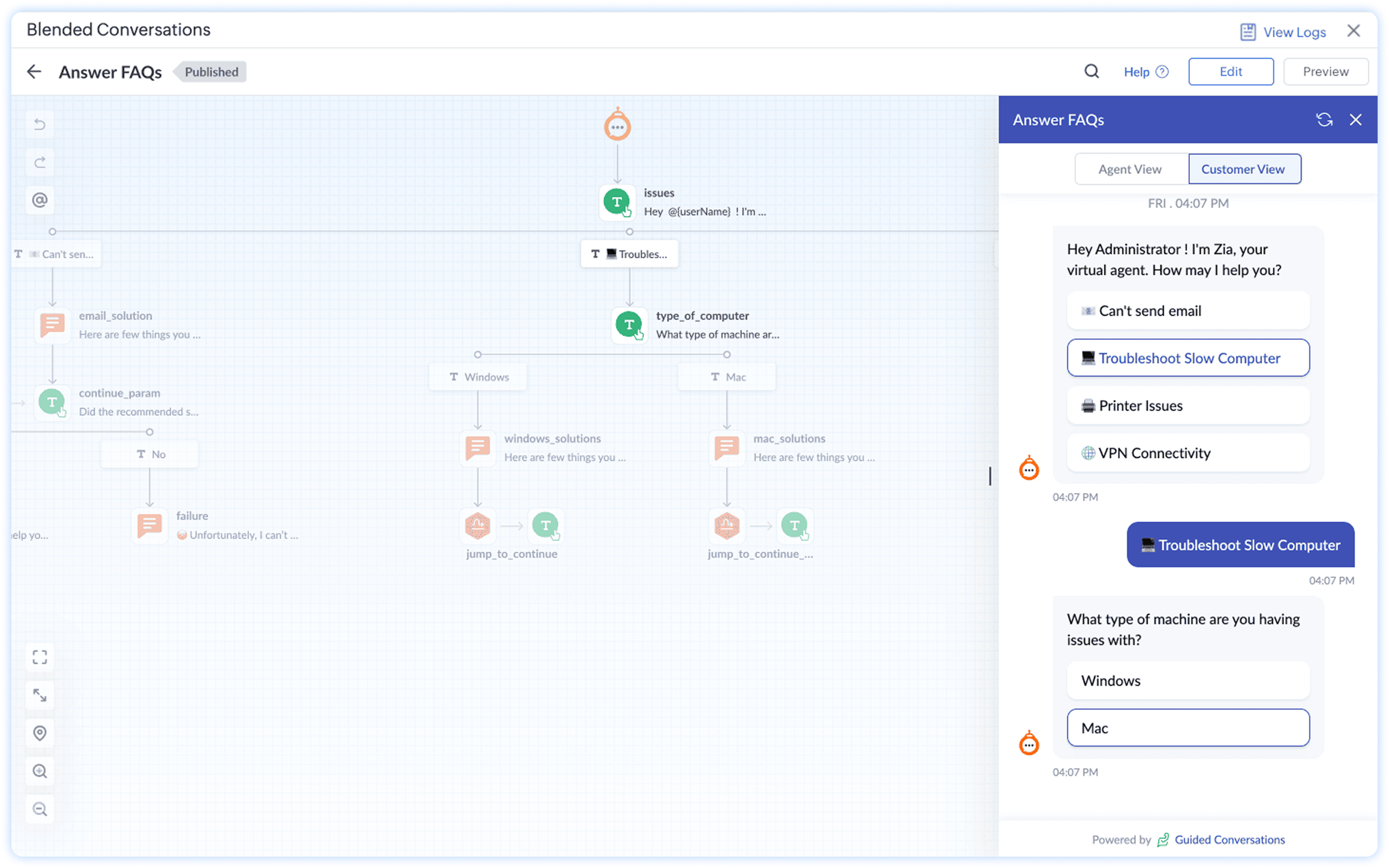 Emplee a Zia, el agente virtual basado en IA, en las líneas de atención de su mesa de servicio y vea cómo ayuda a los usuarios finales y a los técnicos a obtener la información o los servicios que necesitan al instante mediante IA generativa o flujos de conversación predefinidos.