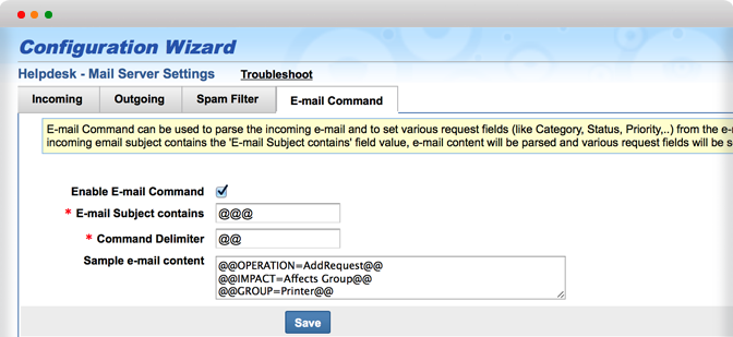 con los comandos por correo electrónico. Simplifique la gestión de tickets.