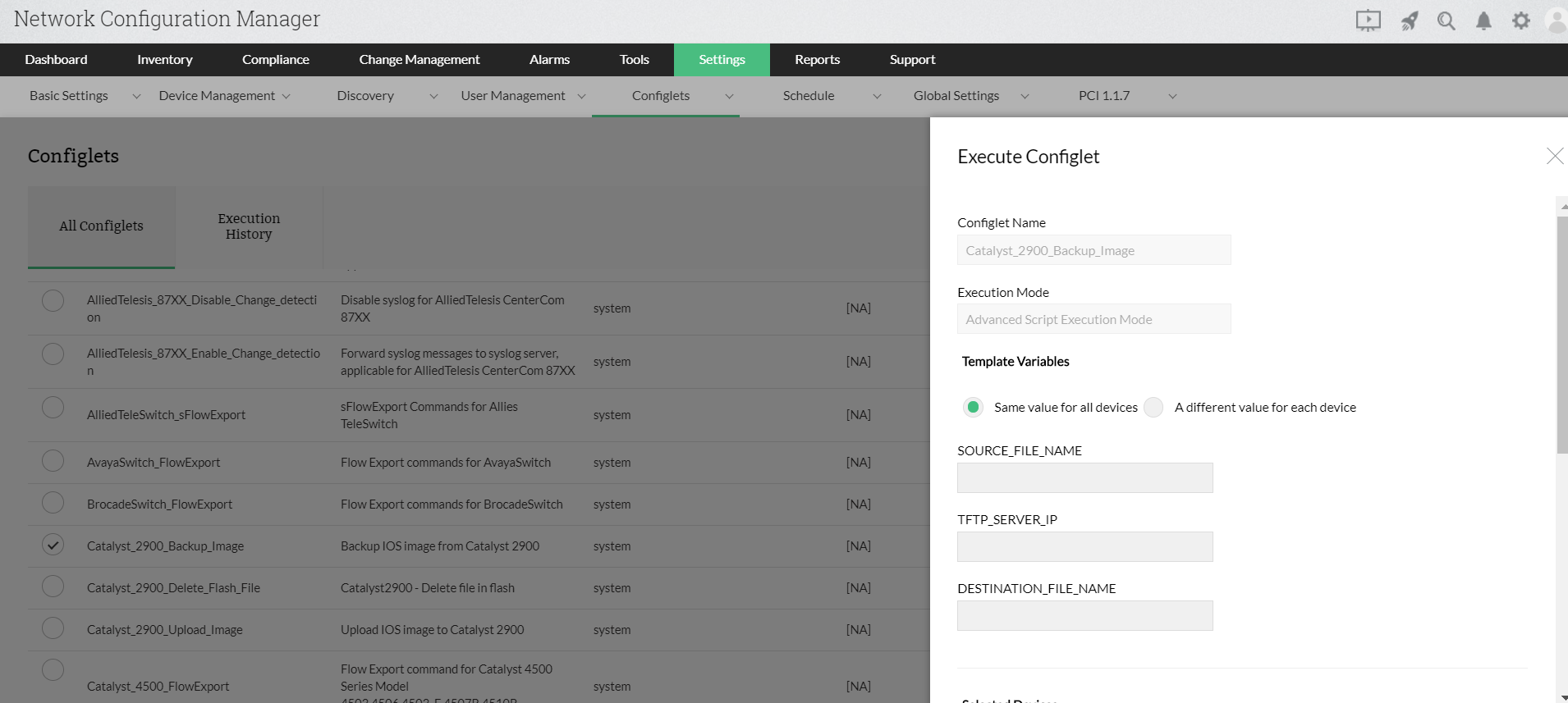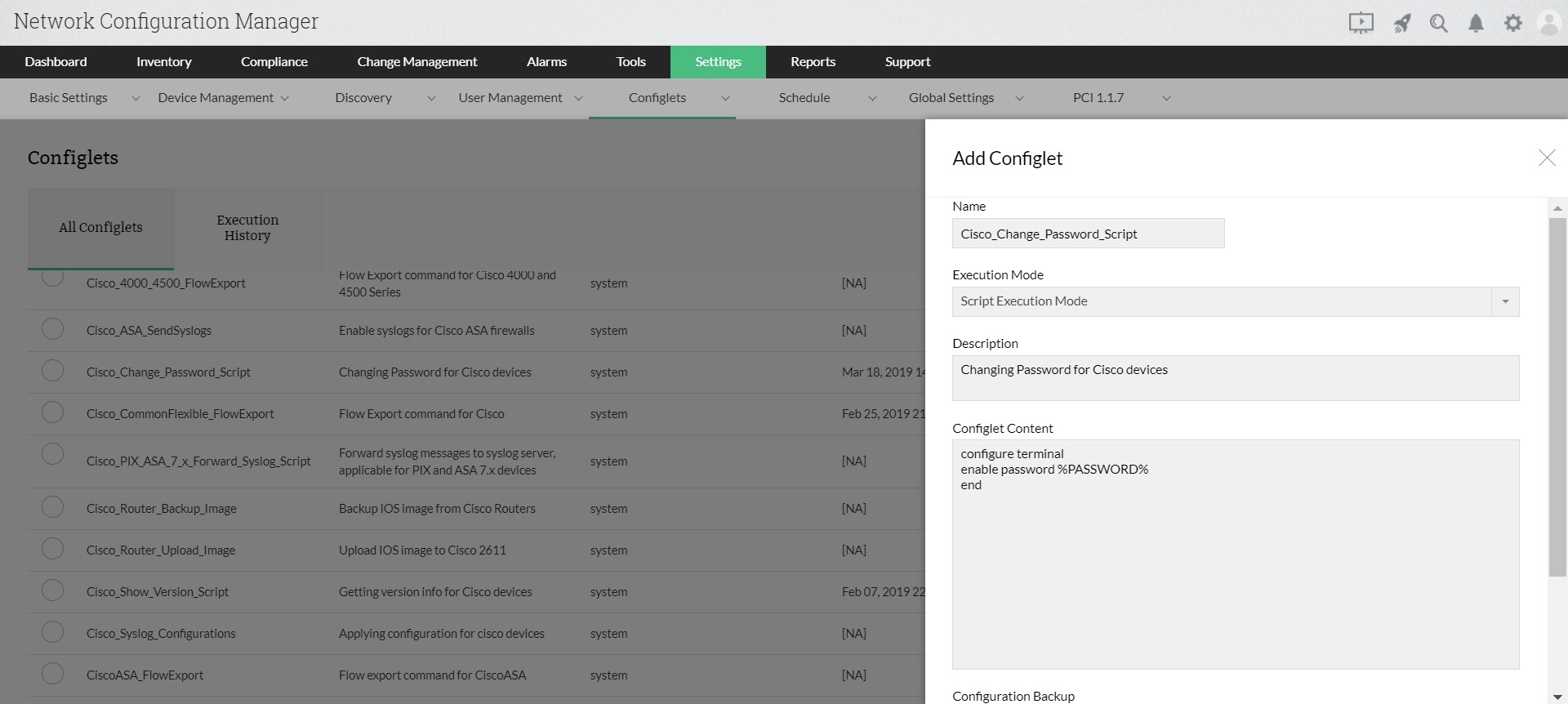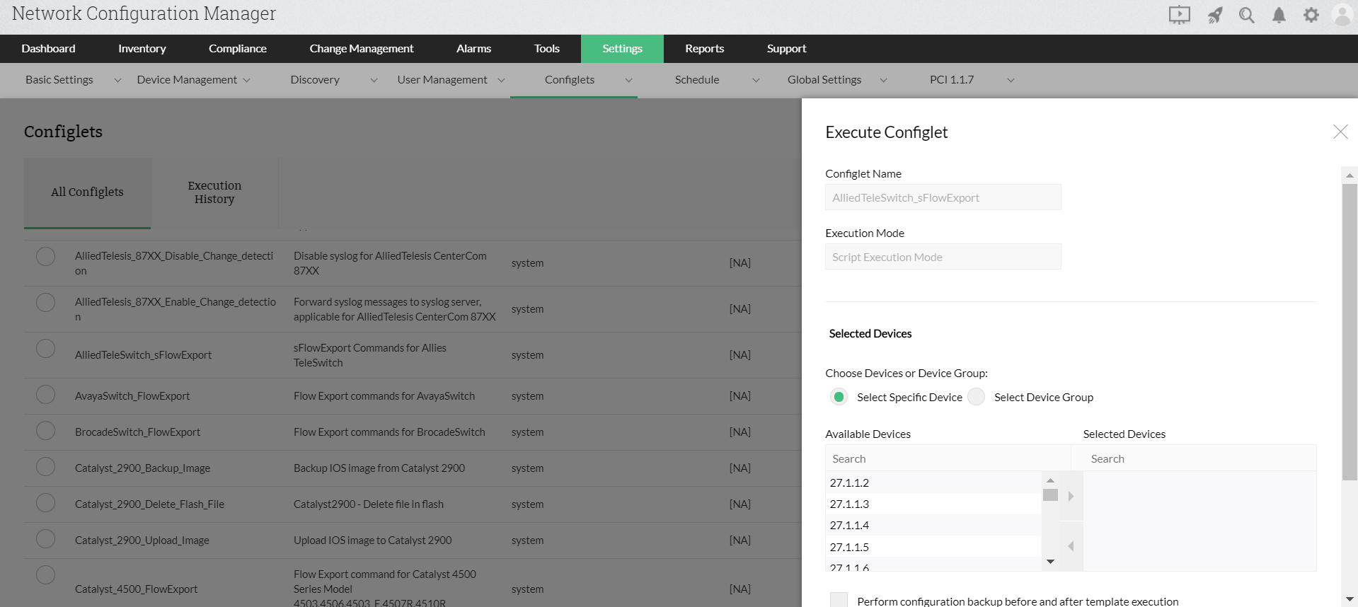 14. Schedule Configuration backup, push configlets, run compliance checks and sync configuration periodically.