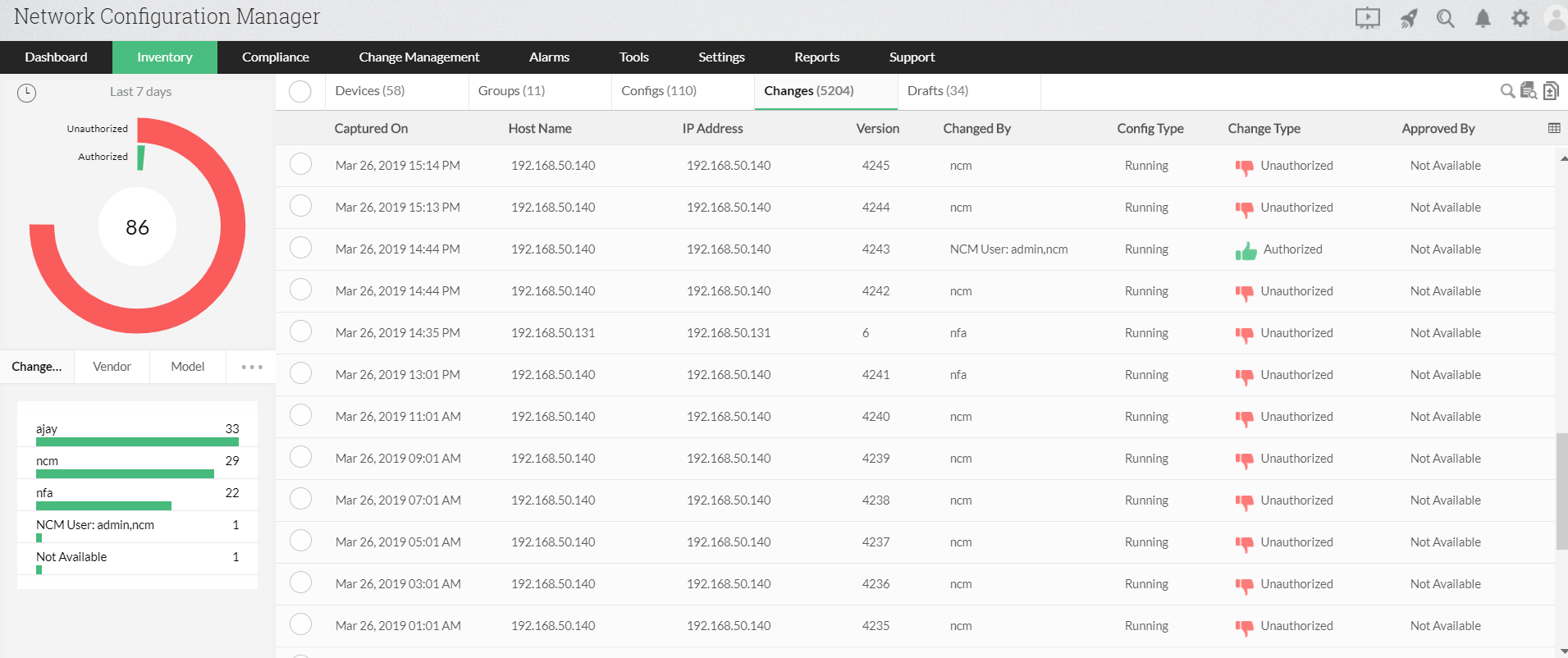 5. Find out any changes made on the network devices outside NCM tool and revert them if needed.
