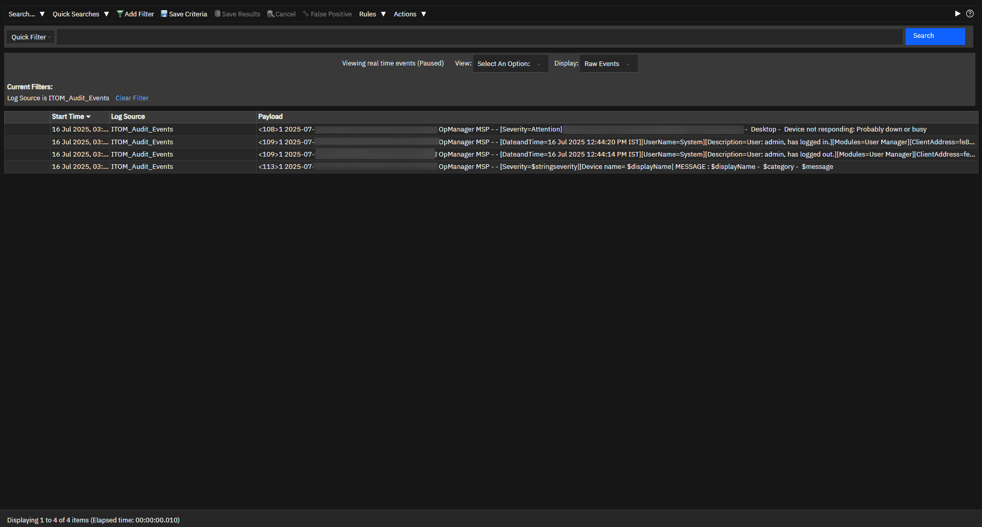 After the integration, IBM QRadar recieves the events from OpManager.