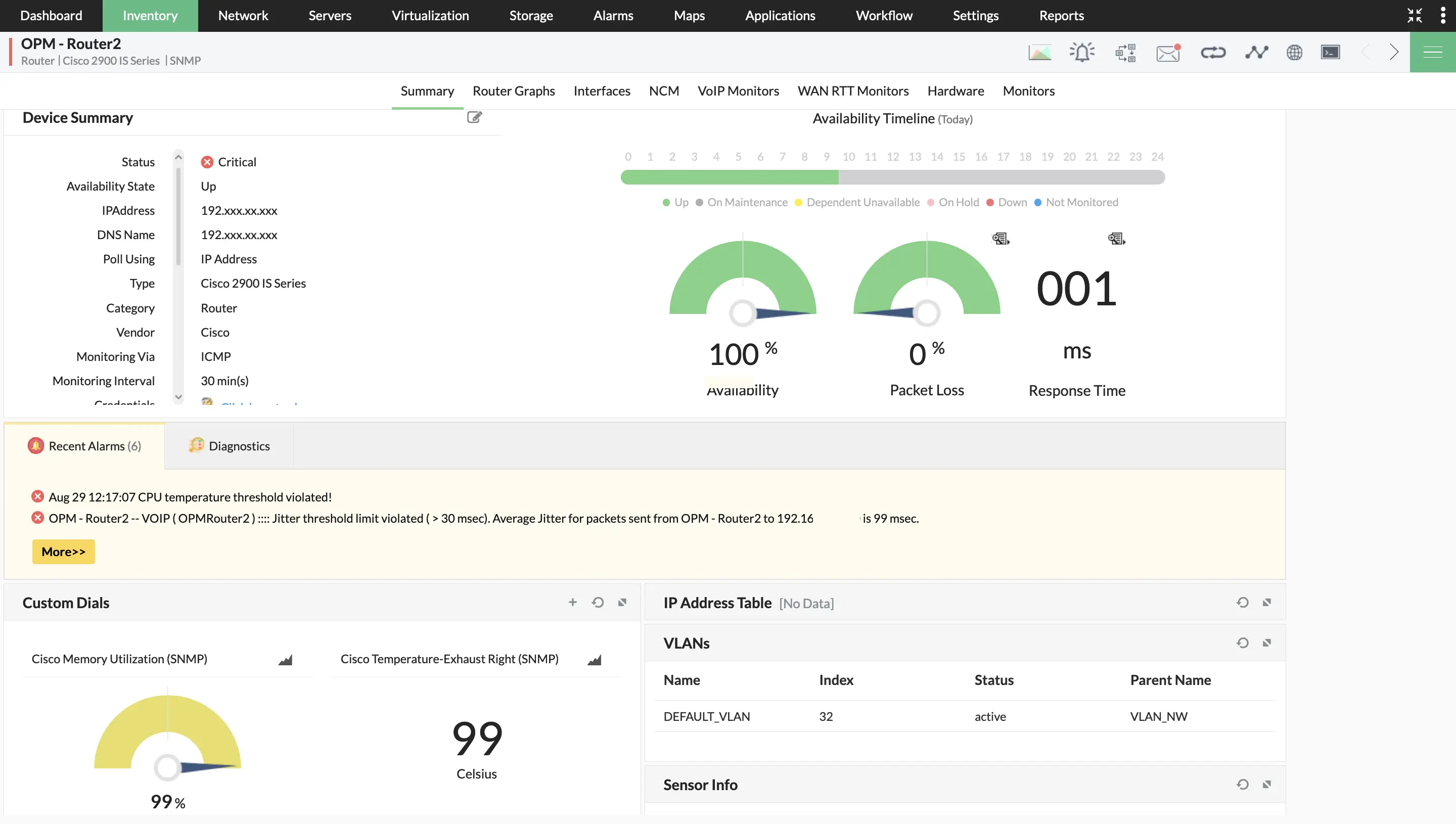 OpManager's in-built AI engine ingests and analyzes monitored data to calculate suitable alarm thresholds on an hourly basis. When enables, OpManager automatically assigns relevant performance monitors for all devices, cutting down alarm floods, false positives, and manual configuration.