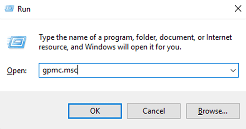 - Klik op Start, zoek naar en open de console Groepsbeleidbeheerof voer de opdrachtregel gpmc.msc uit.