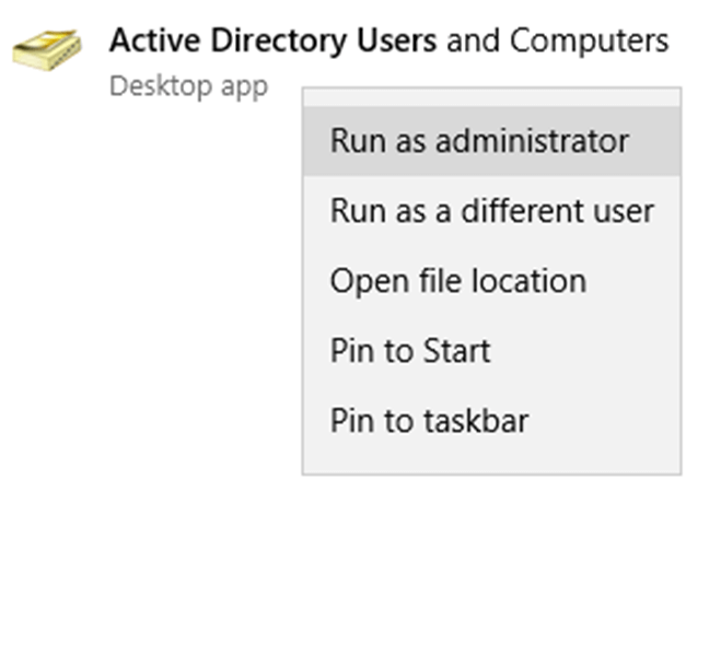 - Druk op Start en zoek vervolgens naar en open Active Directory console voor gebruikers en computers.