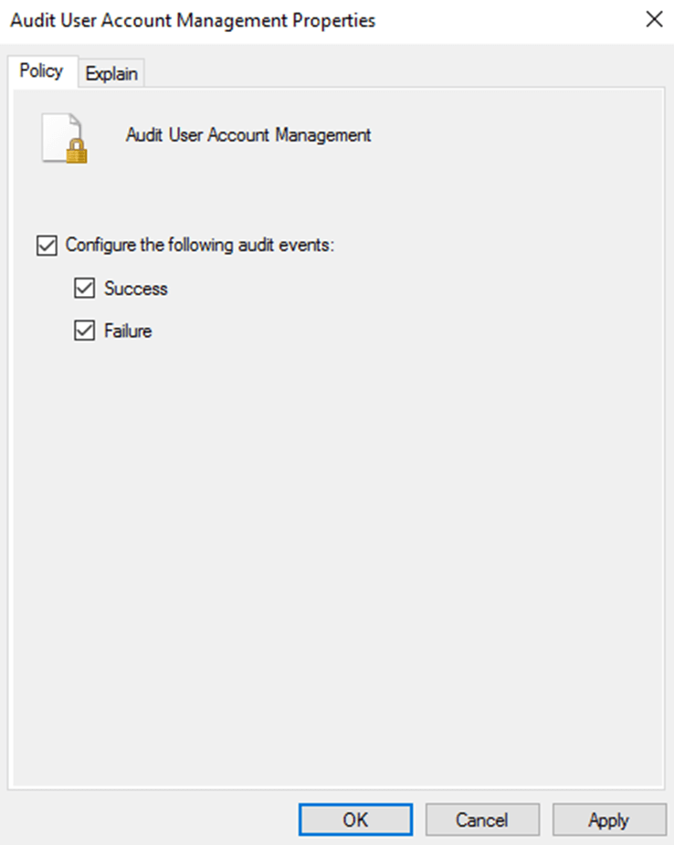 - Navigeer naar Computerconfiguratie > Beleid > Windows instellingen > Beveiligingsinstellingen > Geavanceerde configuratie van controlebeleid > Controlebeleid > Accountbeheer > Gebruikersaccountbeheer controlerenen vink de vakjes naast Configureer de volgende controlegebeurtenissen, Geslaagd en Mislukt aan.