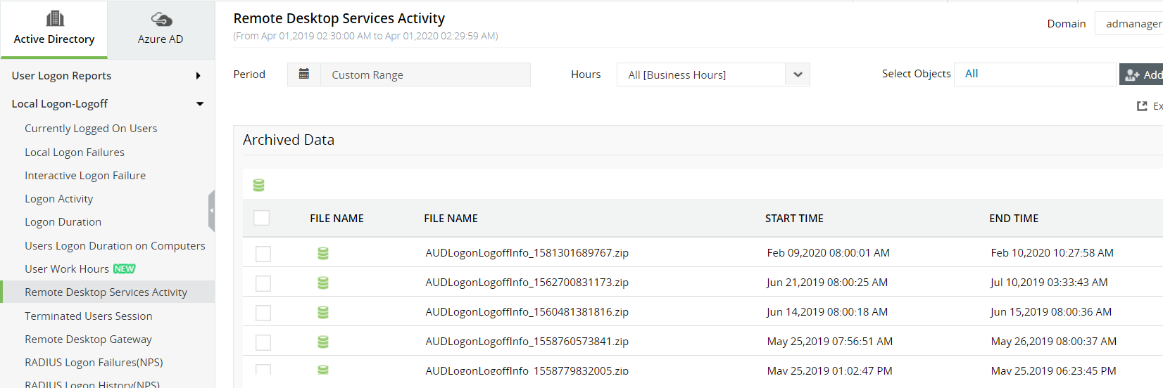 ADAudit Plus zal snel rapporten genereren door alle DC's te scannen en deze rapporten kunnen worden geëxporteerd in meerdere indelingen.