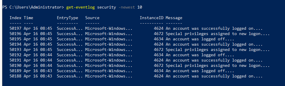 get-eventlog security -newest 100 | where \{$_.entrytype -eq ` "FailureAudit"\}
