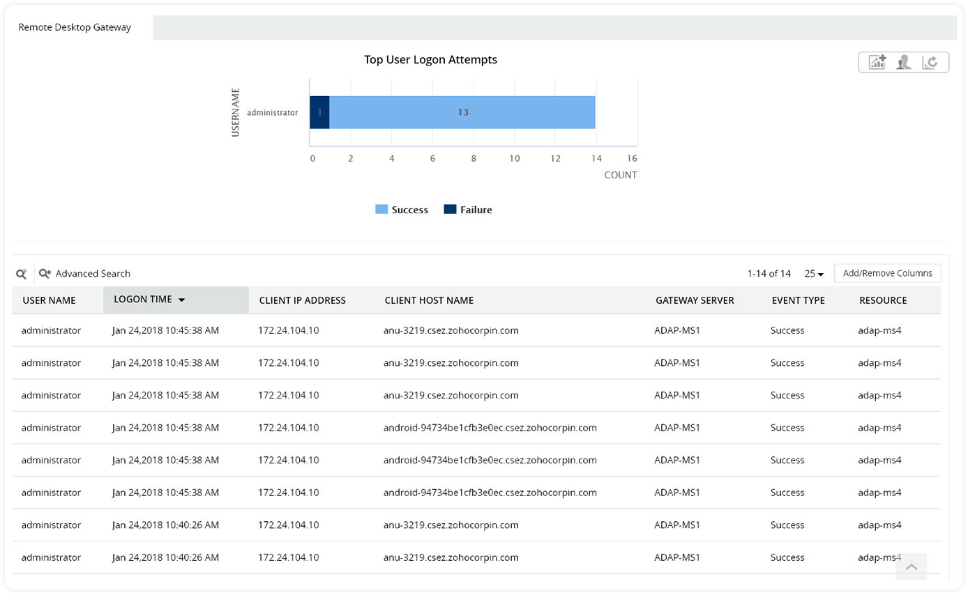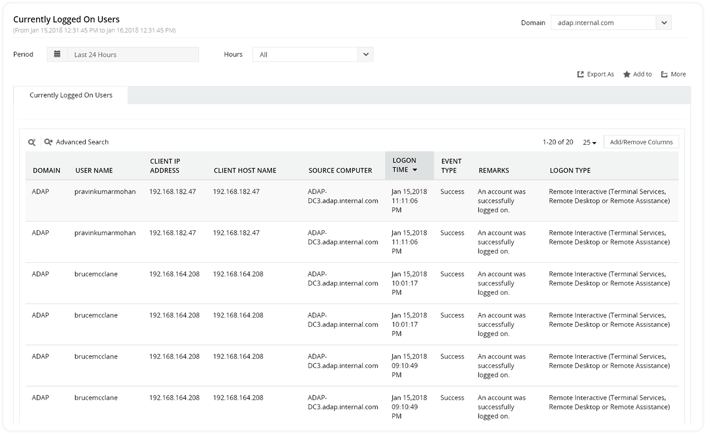 ADAudit Plus zorgt voor volledige zichtbaarheid in Active Directory, waardoor u kwaadaardige activiteit van aanmelden en afmelden direct kunt volgen, hierop kunt reageren en dit kunt beperken.