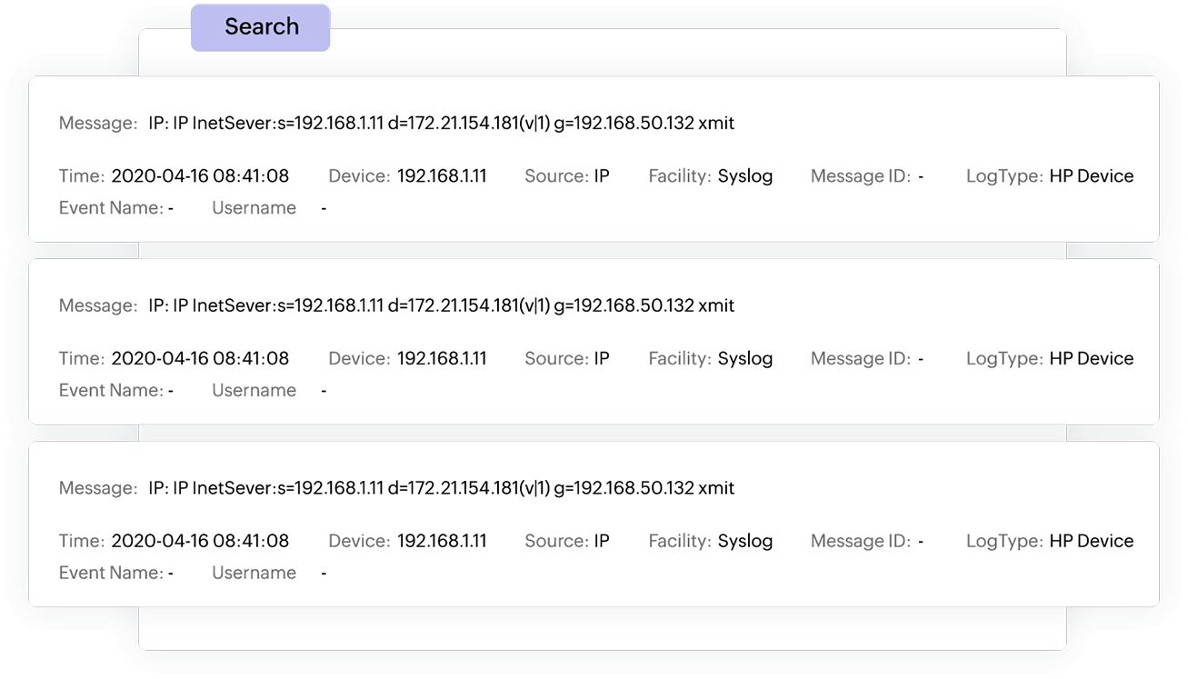 Don't spend time on manual pattern creation. EventLog Analyzer flexibly index logs using default fields or custom fields. It allows you to validate and edit the previously created patterns in no time. Automatically starts indexing and extracting the new field data when a pattern is generated the next time the same log type is imported. Patterns can be modified to index the new fields or to stop indexing the existing fields at anytime.