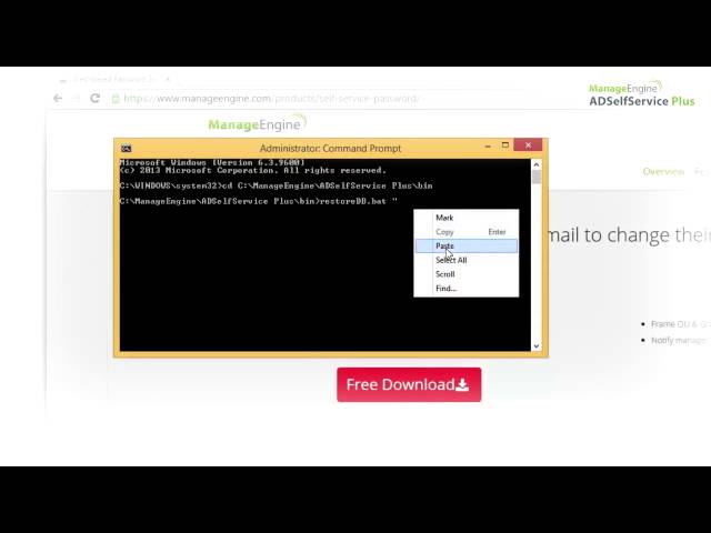 U kunt handmatig een back-up en herstel uitvoeren van de database in ADSelfService Plus door het uitvoeren van bepaald opdrachten.