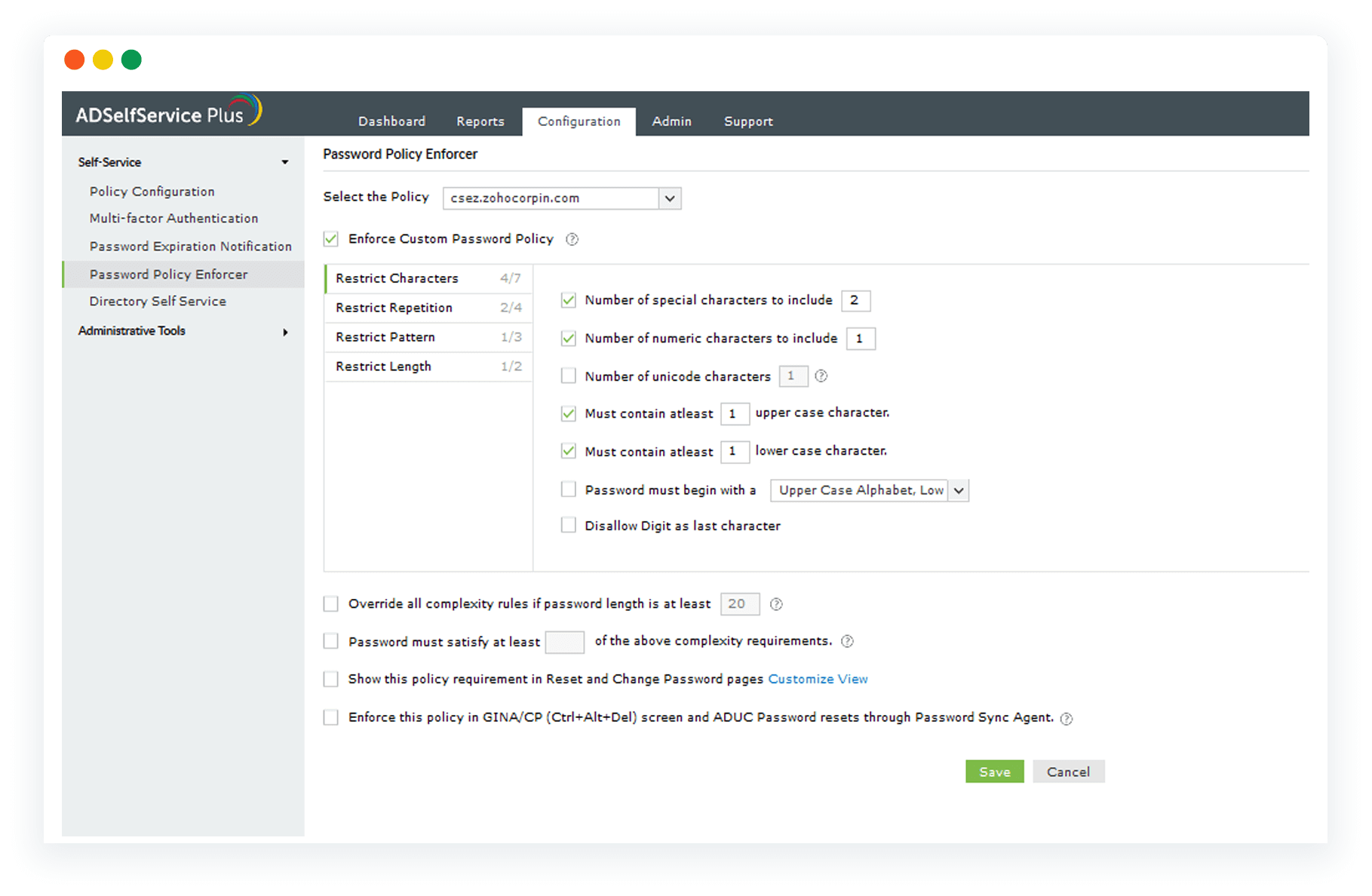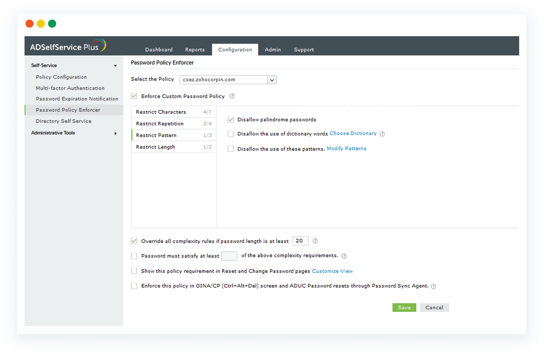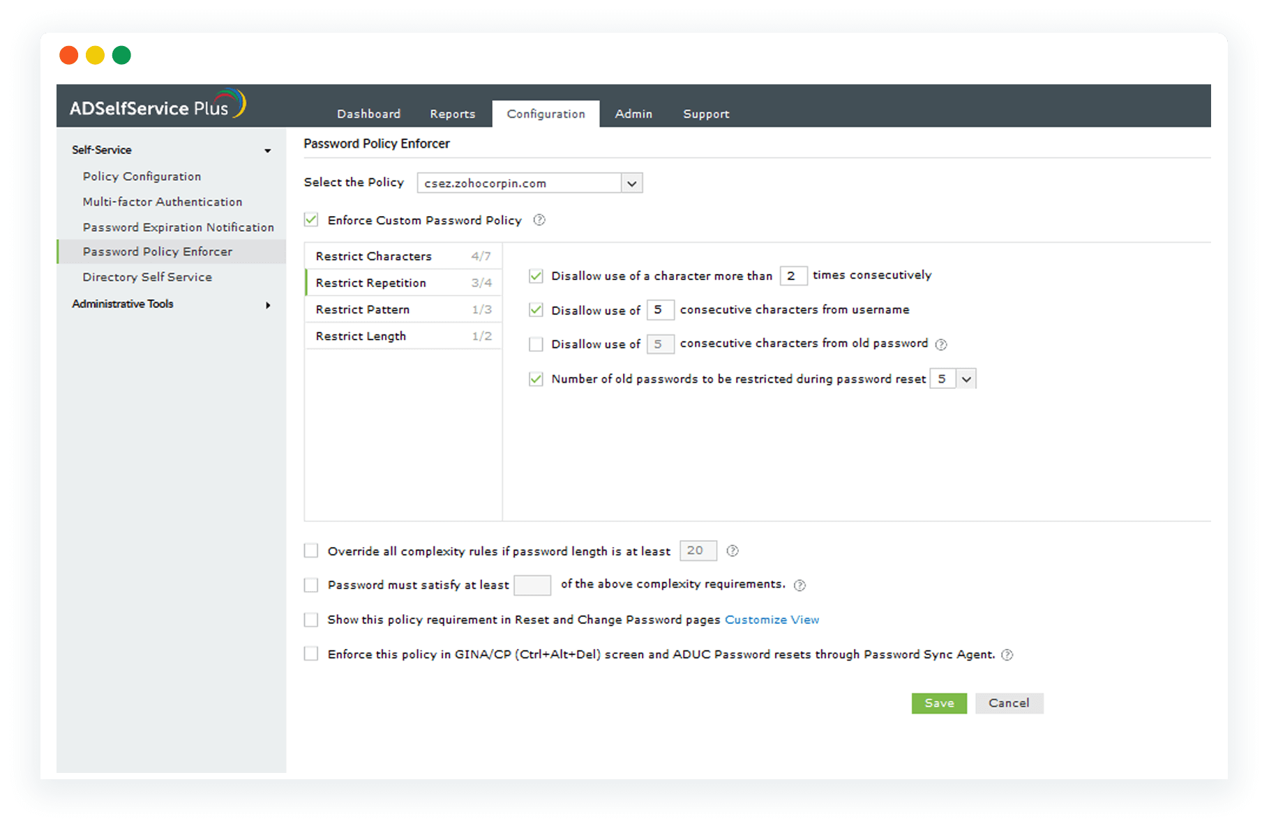 | ADSelfService Plus | Active Directory wachtwoordbeleid instellingen | |