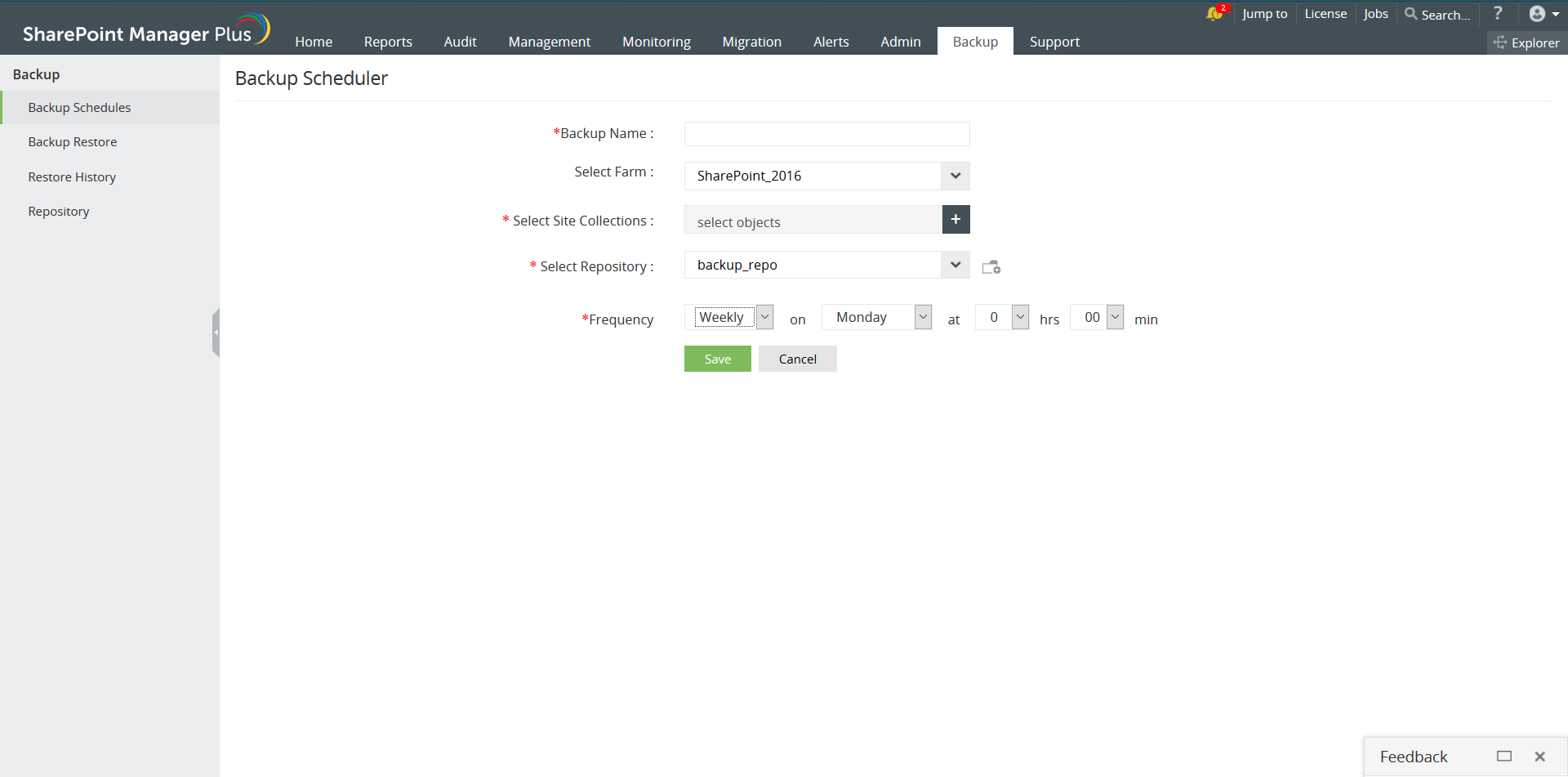 Automatiseer en vereenvoudig het proces van het maken van back-ups van uw lokale SharePoint-gegevens met behulp van SharePoint Manager Plus
