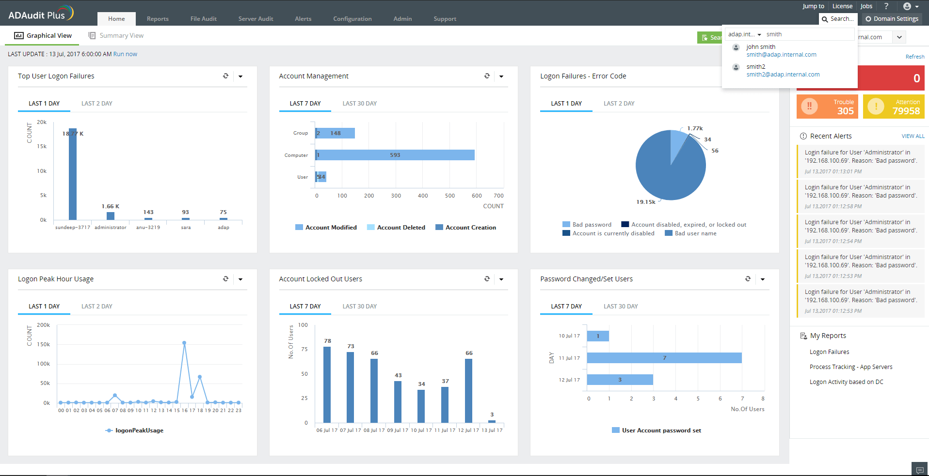 PowerShell może pomóc, ale z pewnością będzie wymagał dużego wysiłku, aby zaoferować rodzaj widoczności i korelacji wymagany do dochodzenia, co jest dokładnie tym, co ADAudit Plus zawiera w swoim narzędziu wyszukiwania.