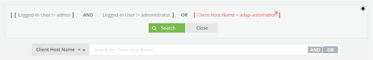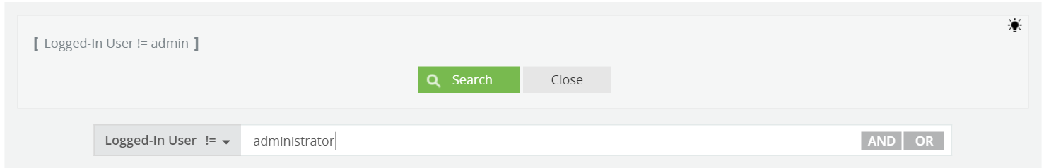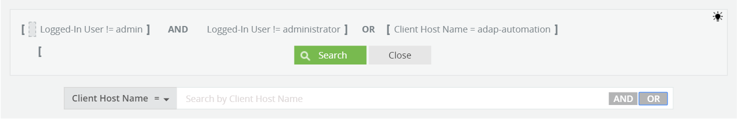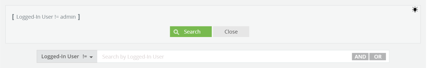 - Aby wyszukiwać wiele zapytań, kliknij przycisk 'AND/OR', gdy wpiszesz tekst wyszukiwania. Otworzy to panel zaawansowanego wyszukiwania.