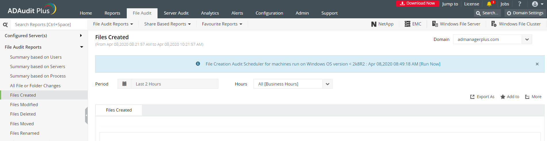 ADAudit Plus to najlepszy sposób na uzyskanie raportów o aktywności pliku, gdyż: