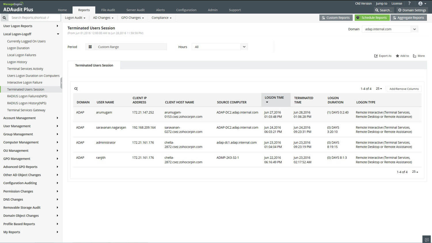Każdy raport Active Directory wymagany na potrzeby stałego monitorowania można dodać do obszaru Moje raporty na zasadzie zakładki do bardzo szybkiego wyszukania. |