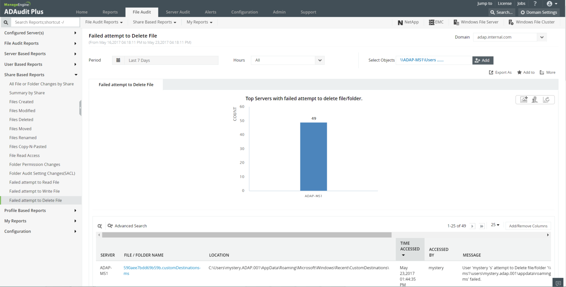 Środowiska inspekcji: Serwery plików systemu Windows | Klastry trybu failover w systemie Windows | Użytkownicy archiwizujący NetApp