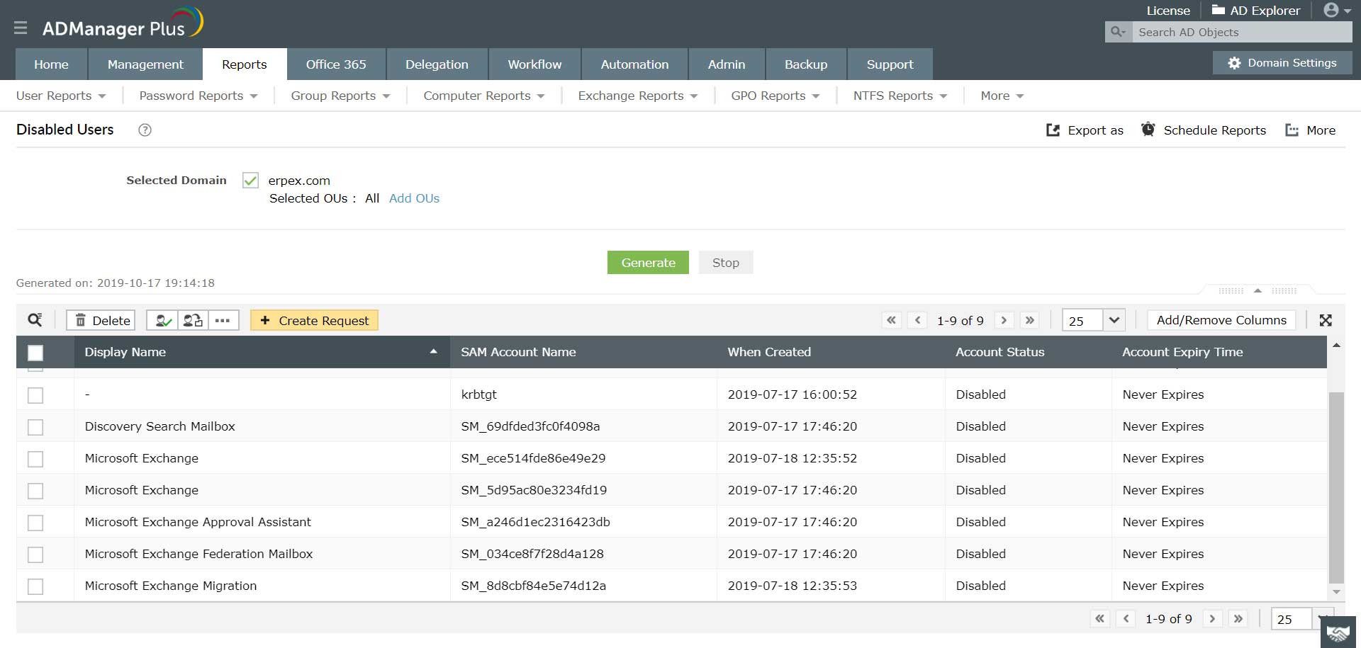 Narzędzie ADManager Plus pomaga wykrywać i usuwać uśpione konta w usłudze Active Directory, oferując niżej opisane i łatwe w użyciu funkcje:
