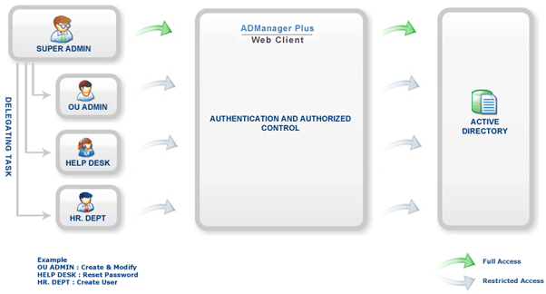 Delegacja i zarządzanie Active Desk Help Desk zyskały duże znaczenie w procesie zarządzania usługą Active Directory systemu Microsoft Windows. W miarę rozwoju organizacji sieci, dodatkowe zasoby i zadania administracyjne rosną w podobnym tempie. Działowi IT trudno jest zarządzać całym katalogiem Active w sposób terminowy, bezbłędny i wydajny, dzięki czemu „Delegowanie zadań Active Directory” ma kluczowe znaczenie. Dzięki rodzimym narzędziom Active Directory delegowanie staje się kolejnym żmudnym i uciążliwym zadaniem.