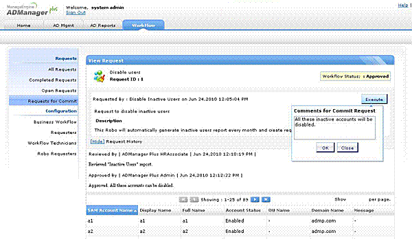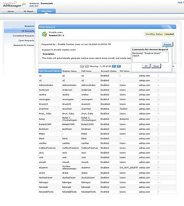 Recenzent loguje się do ADManager Plus - -> Kliknij zakładkę roboczą