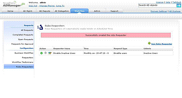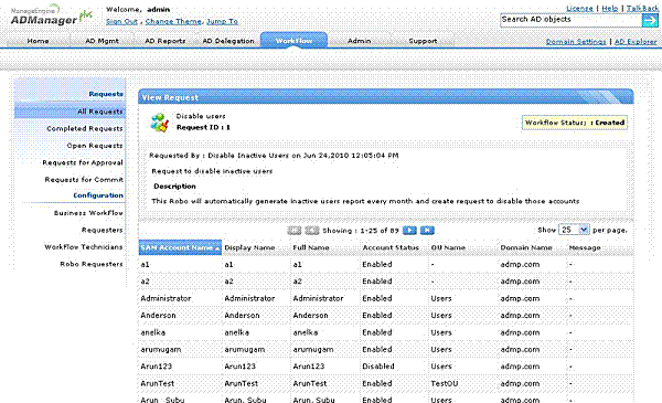 Administrator loguje się do ADManager Plus - -> Kliknij zakładkę roboczą