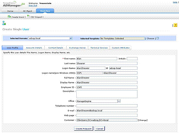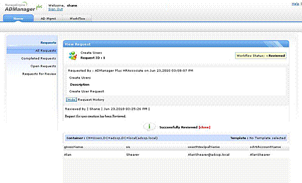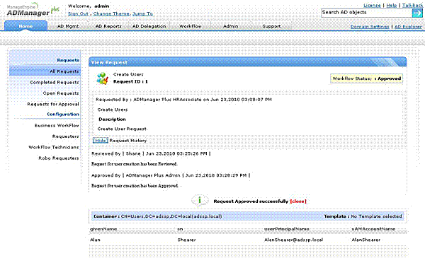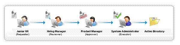 Młodszy specjalista HR rekrutuje pracownika i prosi o stworzenie konta użytkownika w AD dla tego pracownika. Będzie menedżer rekrutacji, który zatwierdzi i wyśle do zatwierdzenia do PM. Po zatwierdzeniu przez PM, administrator systemu tworzy użytkownika.